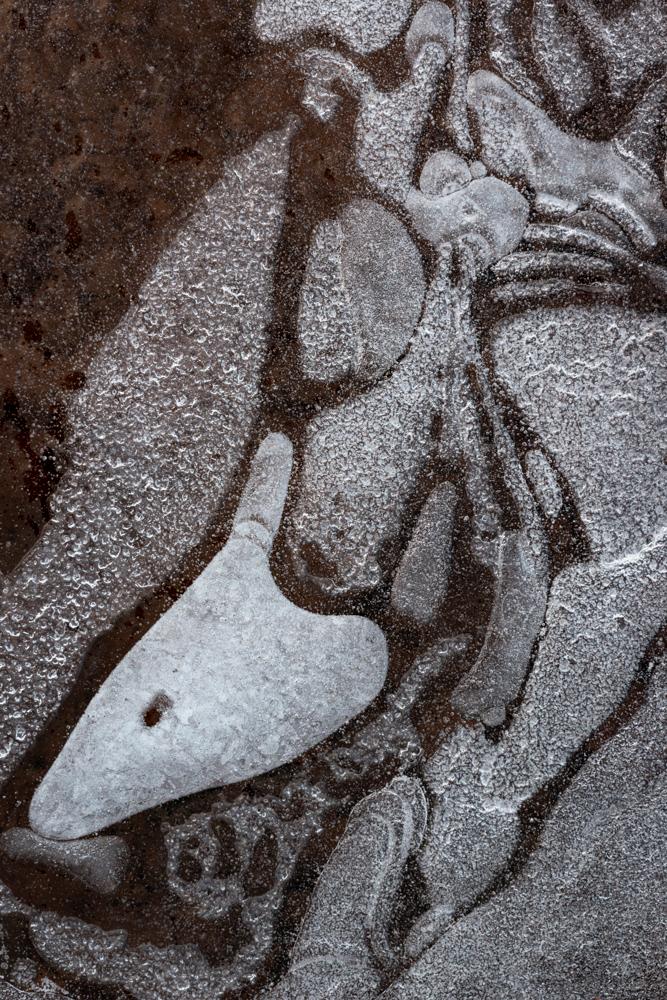 "Usa, Utah. Abstract design of frozen bubble patterns in stream, Hunter Canyon, near Moab"