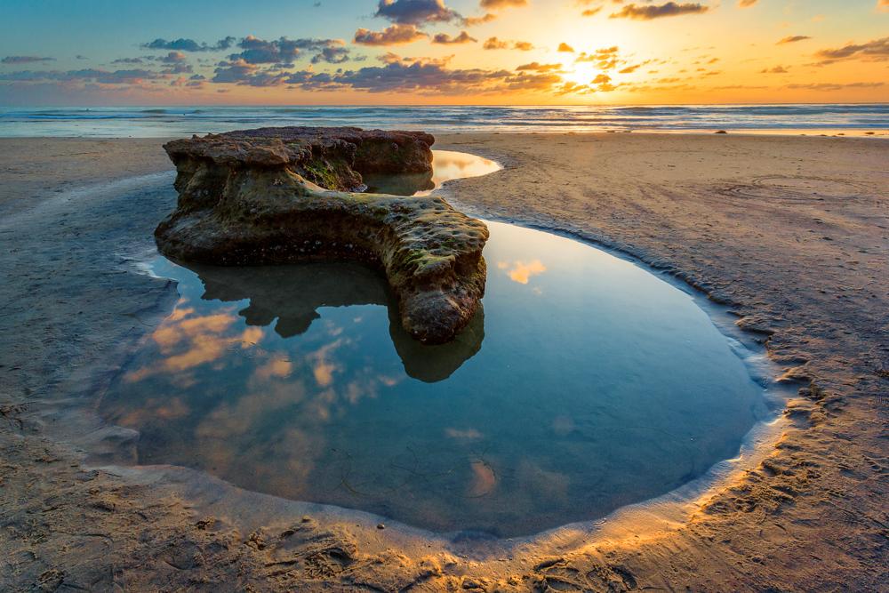 "Rock formations at Swamis Beach in Encinitas, CA"