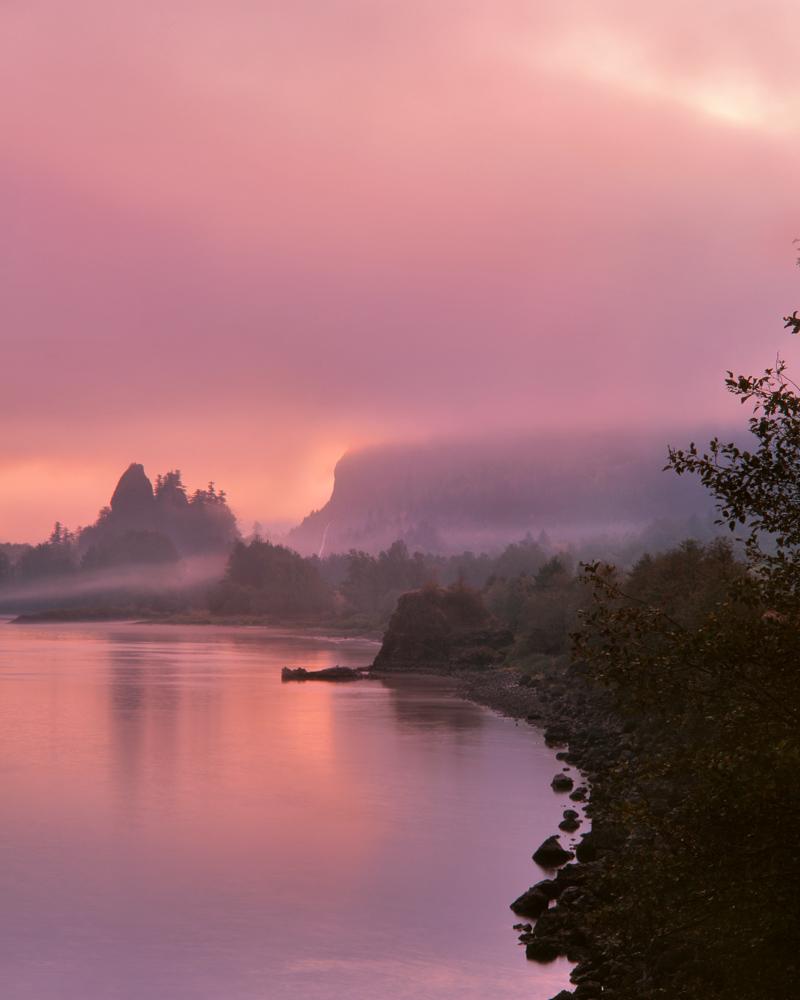 "USA, Oregon, Columbia River Gorge National Scenic Area. Fog along Columbia River."