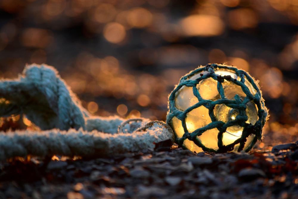 "USA, Southeast Alaska near Ketchikan, Japanese glass fishing float."