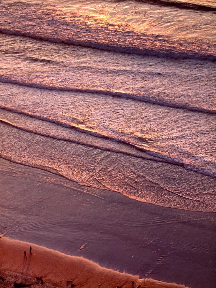"USA, California, La Jolla, Wave patterns at Black's Beach at sunset"