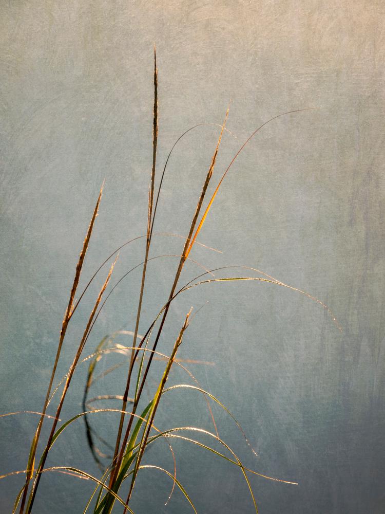 "USA, Massachusetts, Cape Cod, Dew-covered reeds at sunrise (texture overlay)"