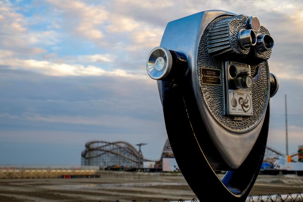"Tourist telescope looking out at an amusement park, Wildwood, New Jersey, Usa"