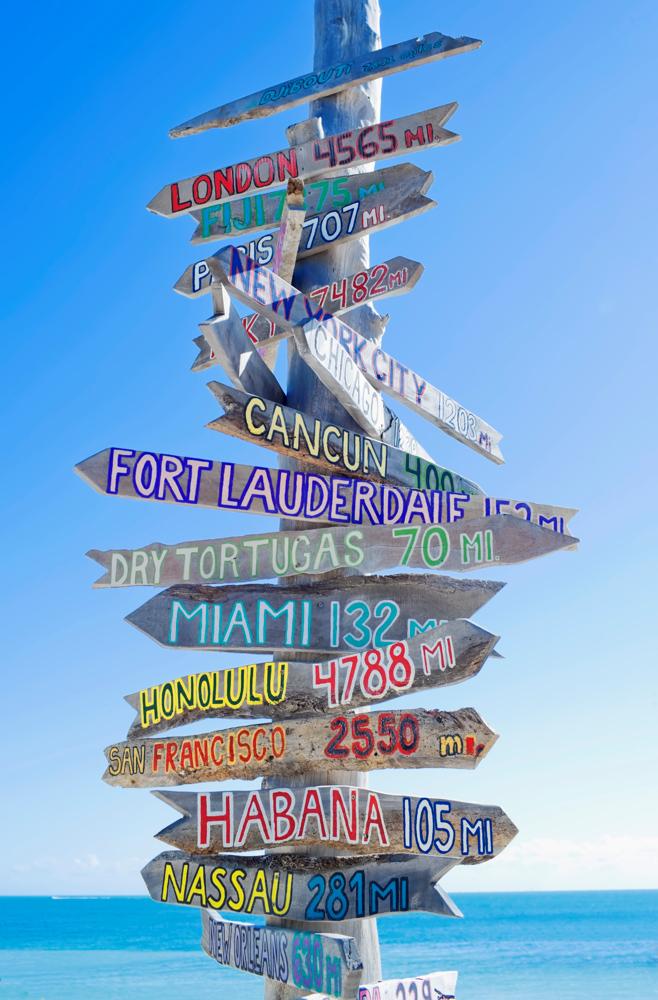 "Directions signpost near seaside, Key West, Florida, USA"